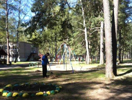 Учитывая, что первая смена начинается 4 июня 2017 года, в лагере полным ходом идут ремонтные работы по подготовке корпусов, столовой, актового зала к принятию отдыхающих: ведется побелка, покраска, уборка и другие работы как внутри помещений, так и по благоустройству территории.