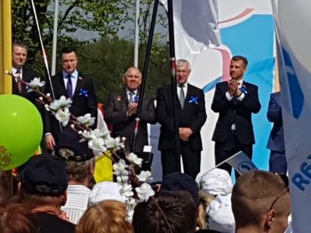 В торжественной церемонии, состоявшейся в парке Победы, приняли участие министр труда и социальной защиты Беларуси Ирина Костевич, председатель Федерации профсоюзов Беларуси Михаил Орда, заместитель председателя Мингорисполкома Игорь Юркевич, председатель Минского городского объединения организаций профсоюзов Николай Белановский, первый секретарь ЦК БРСМ Андрей Беляков, представители администрации Центрального района, общественных объединений и политических партий.