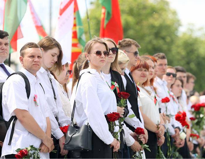 В рамках культурно-патриотической акции «Календарь памяти» 26 июня 2022 к монументу Победы молодые педагоги Советского района возложили цветы в память о жертвах Великой Отечественной войны и геноцида белорусского народа.