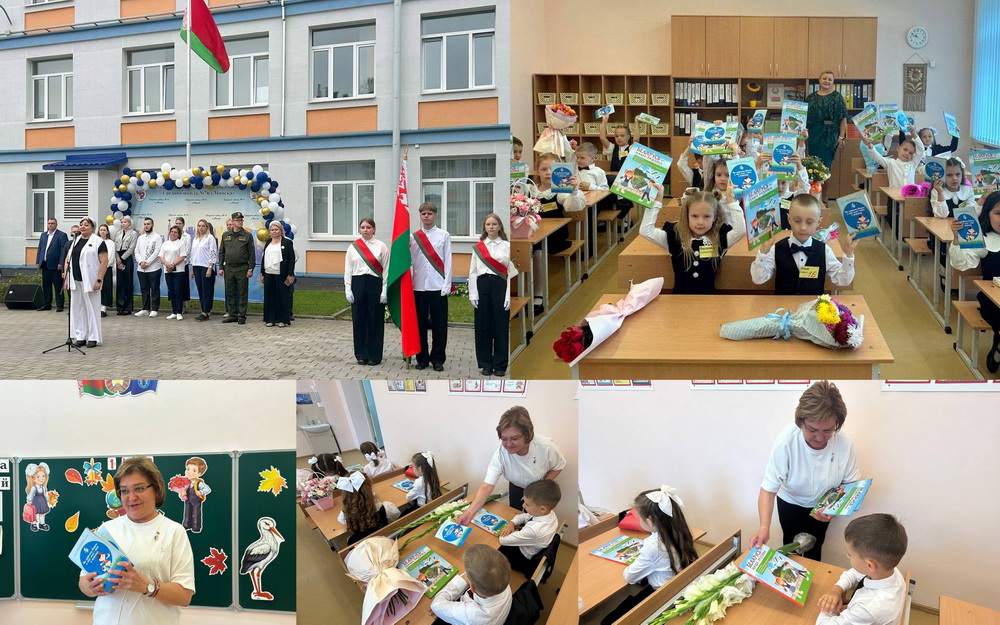Сегодня председатель Советской районной г.Минска организации Белорусского профессионального союза работников образования и науки Ирина Шпак приняла участие в торжественной линейке, посвященной началу 2025/2026 учебного года в ГУО «Средняя школа № 76 г.Минска» и, по традиции, преподнесла в подарок книжку “Пра дзяўчынку Марусю, у якой мама і тата ў прафсаюзе”