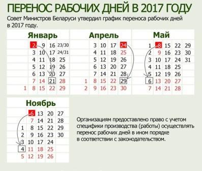 Перенос рабочих дней в 2017 году
